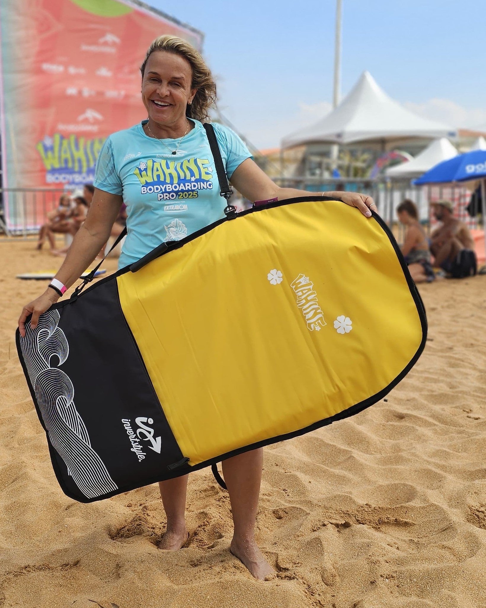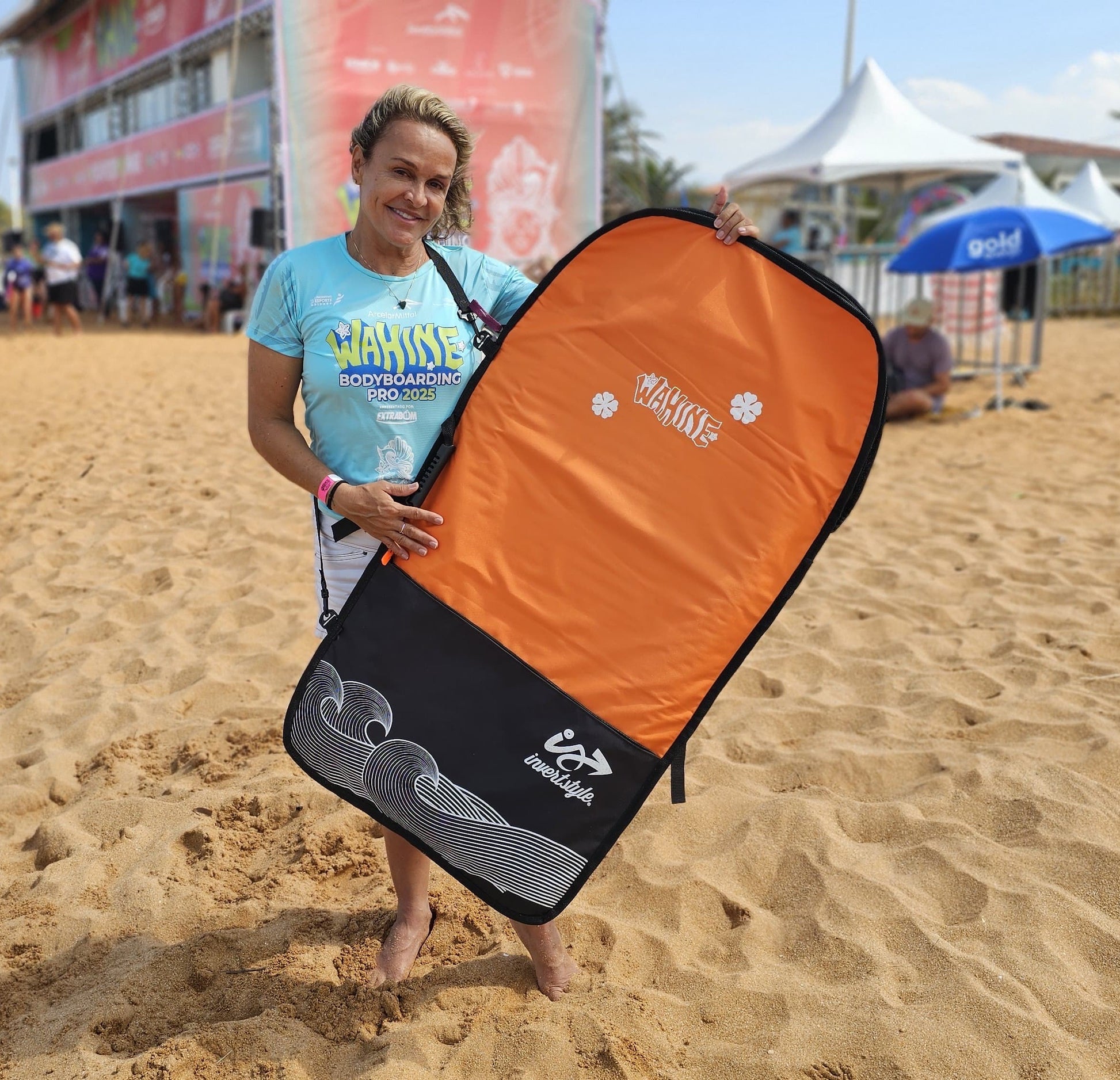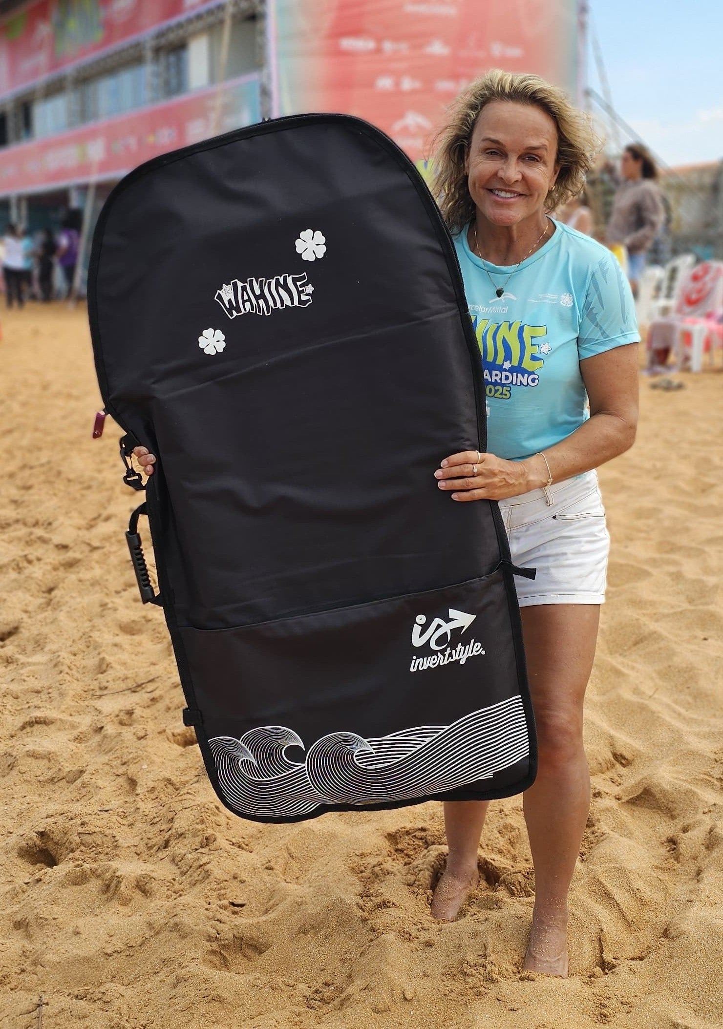 A capa de bodyboard Wahine em comemoração ao evento Wahine idealizado pela nossa multicampeã Neymara Carvalho é uma parceria de colab com a Invert Style, com o intuito de oferecer a qualidade que você precisa para produtos de bodyboarding. A capa Dia a Dia é ótima opção para transportar seu bodyboard, nadadeiras e acessórios no dia a dia, uma capa fabricada 100% em Nylon 600 Osford e totalmente reforçada, alças tipo mochila totalmente acolchoada em neoprene 5mm para maior conforto nos ombros.