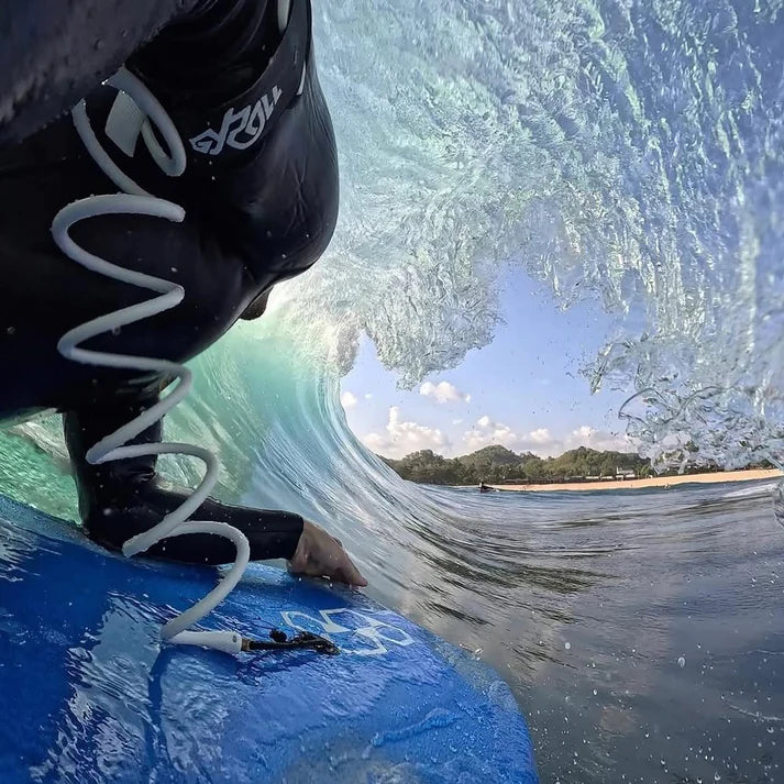 "Eu odiava usar leashes! Mas como um bodyboarder eu sei que existem situações onde eles ajudam muito, e outras onde eles são extremamente necessários. Então eu mesmo desenhei e desenvolvi o meu próprio leash, um modelo que resolvia todos os problemas que me fazia odiá-los no meu começo. Eu demorei mais de 5 anos desenvolvendo e testando o que eu sinto ser o melhor leash feito até hoje."